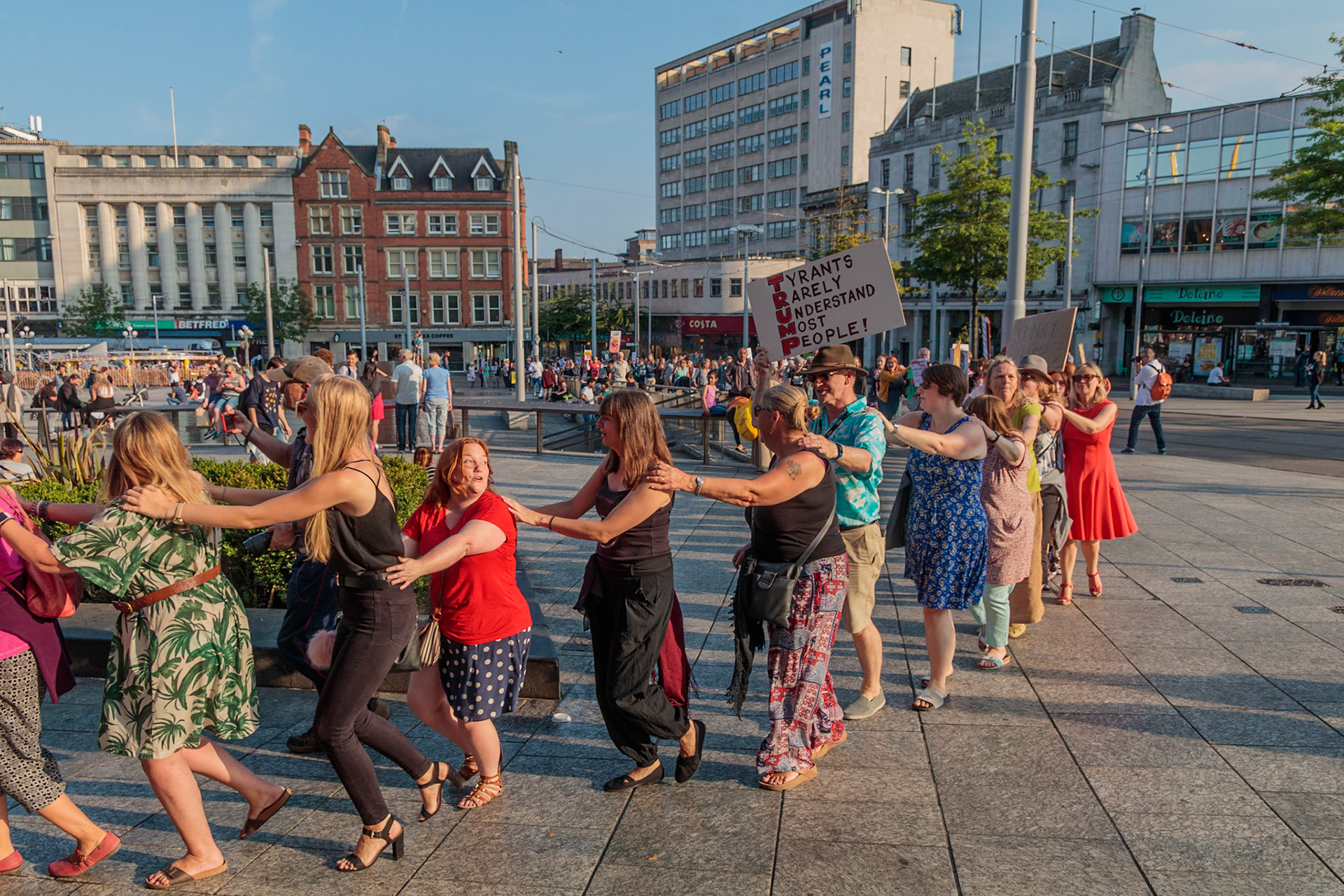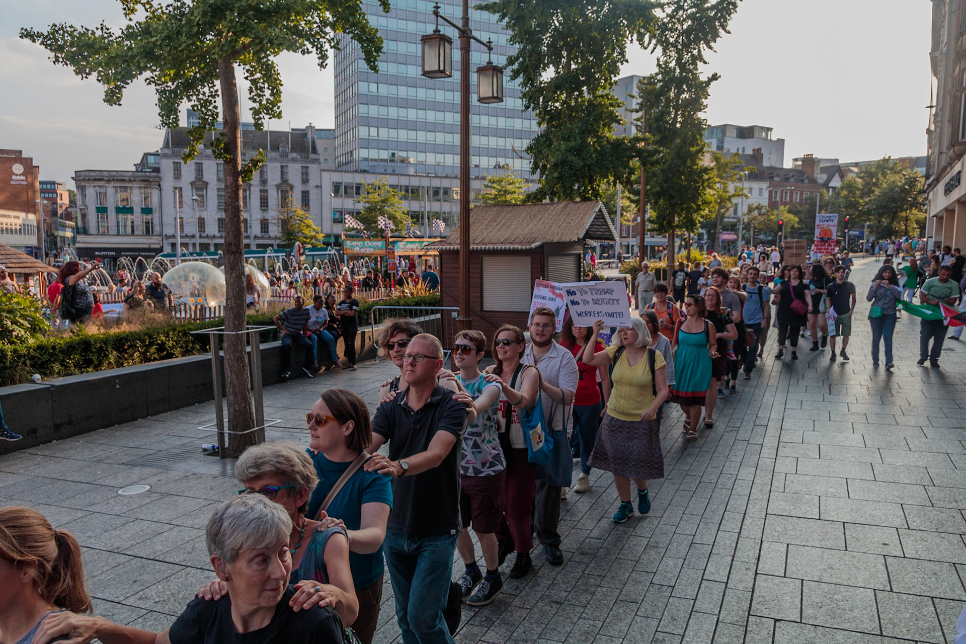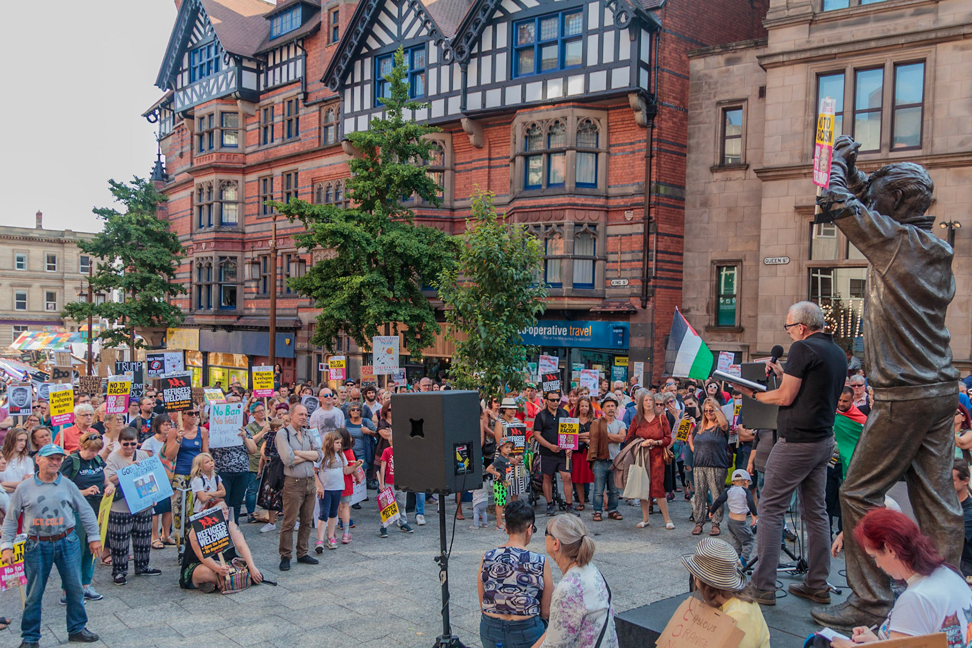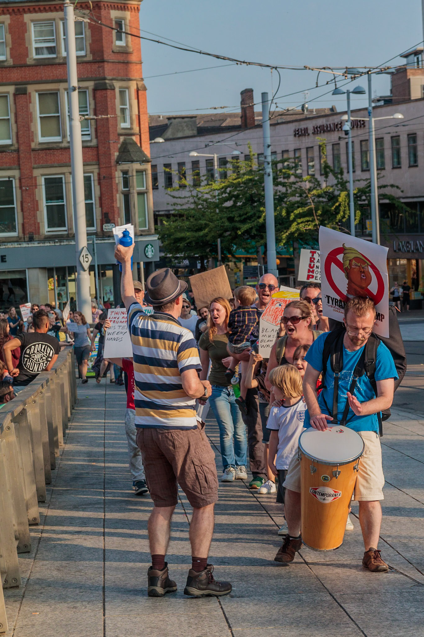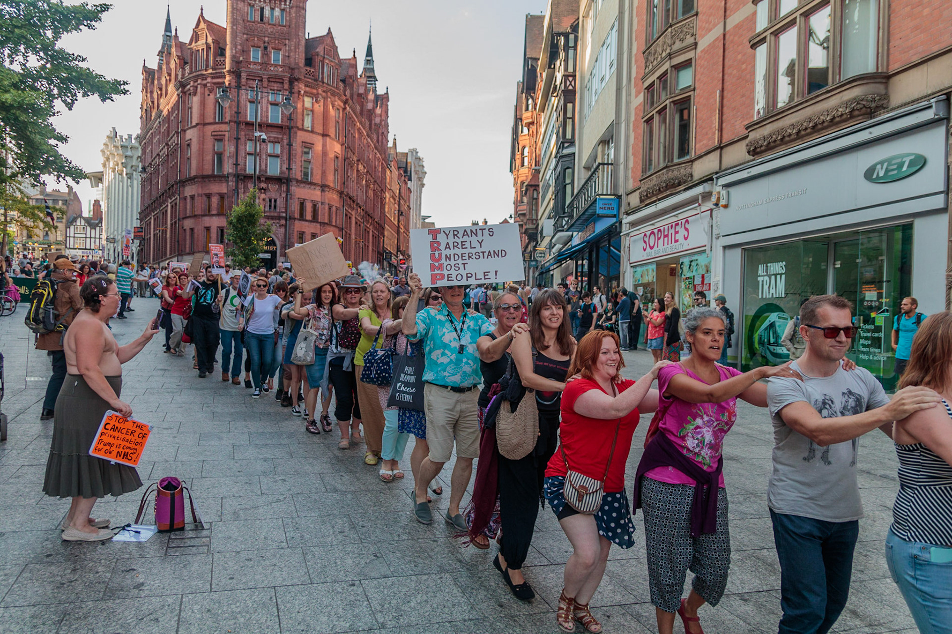 Anti Donald Trump protest at Speakers' Corner, Nottingham followed by a communal Conga Dance around the Old Market Square.