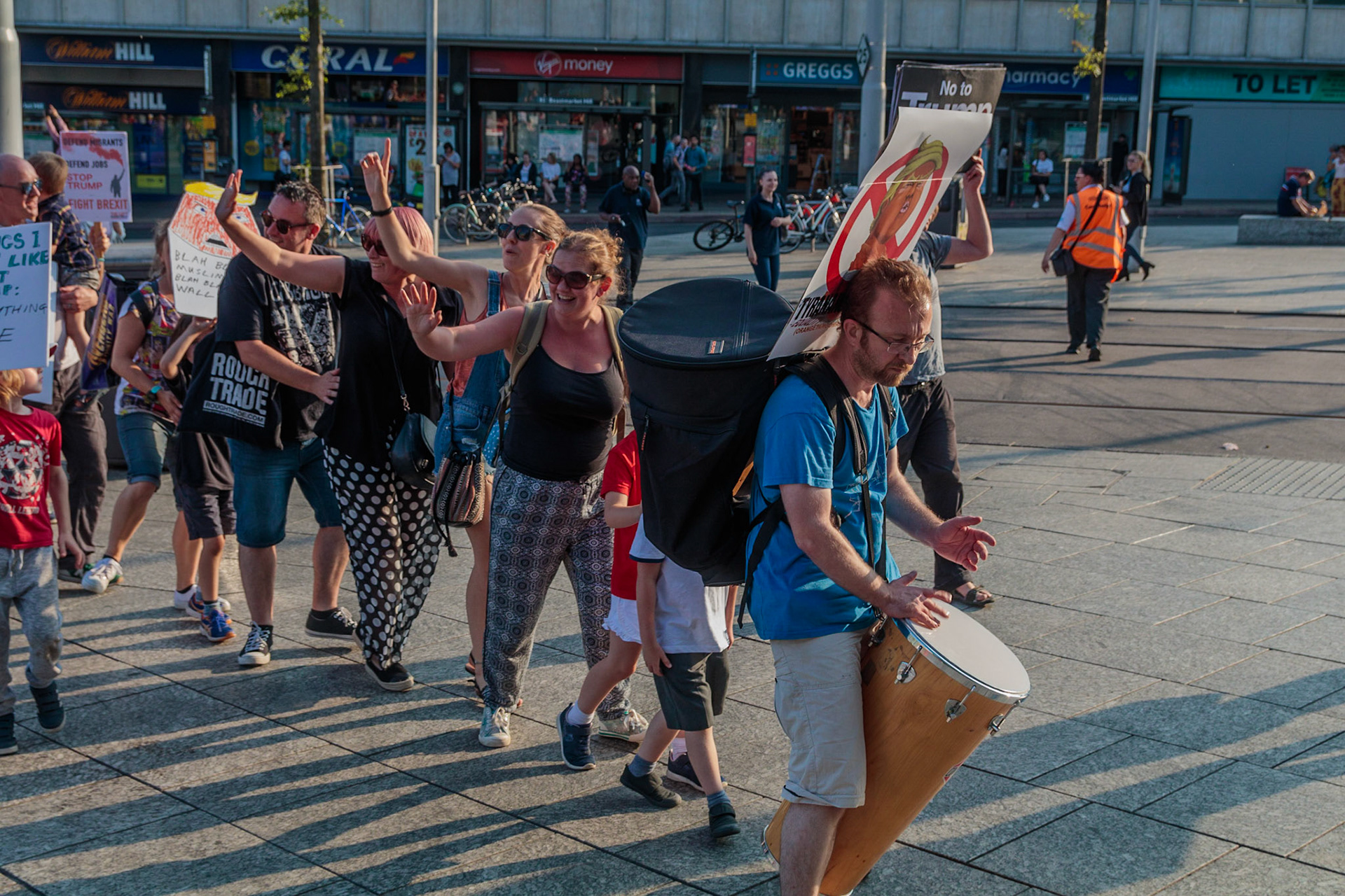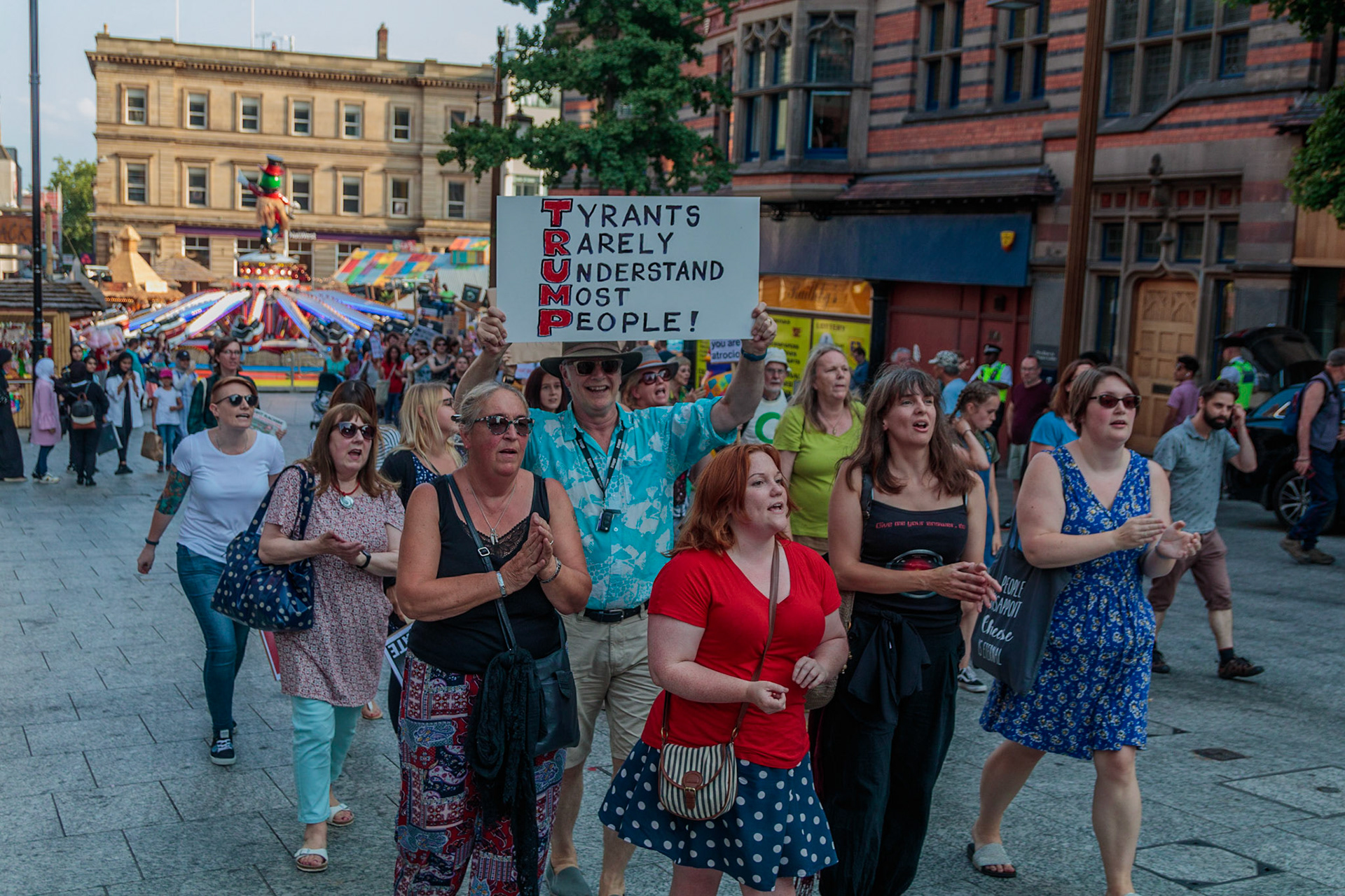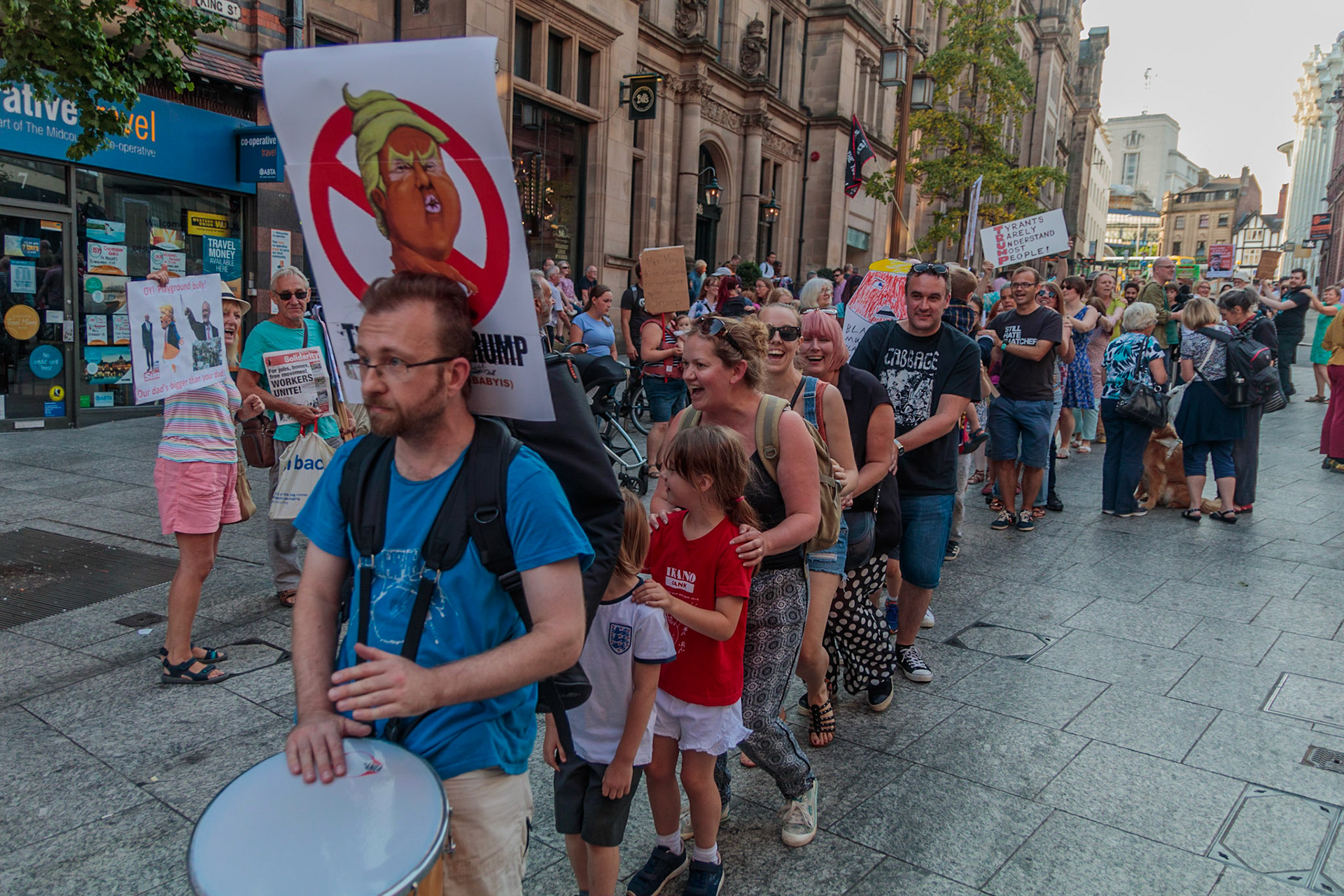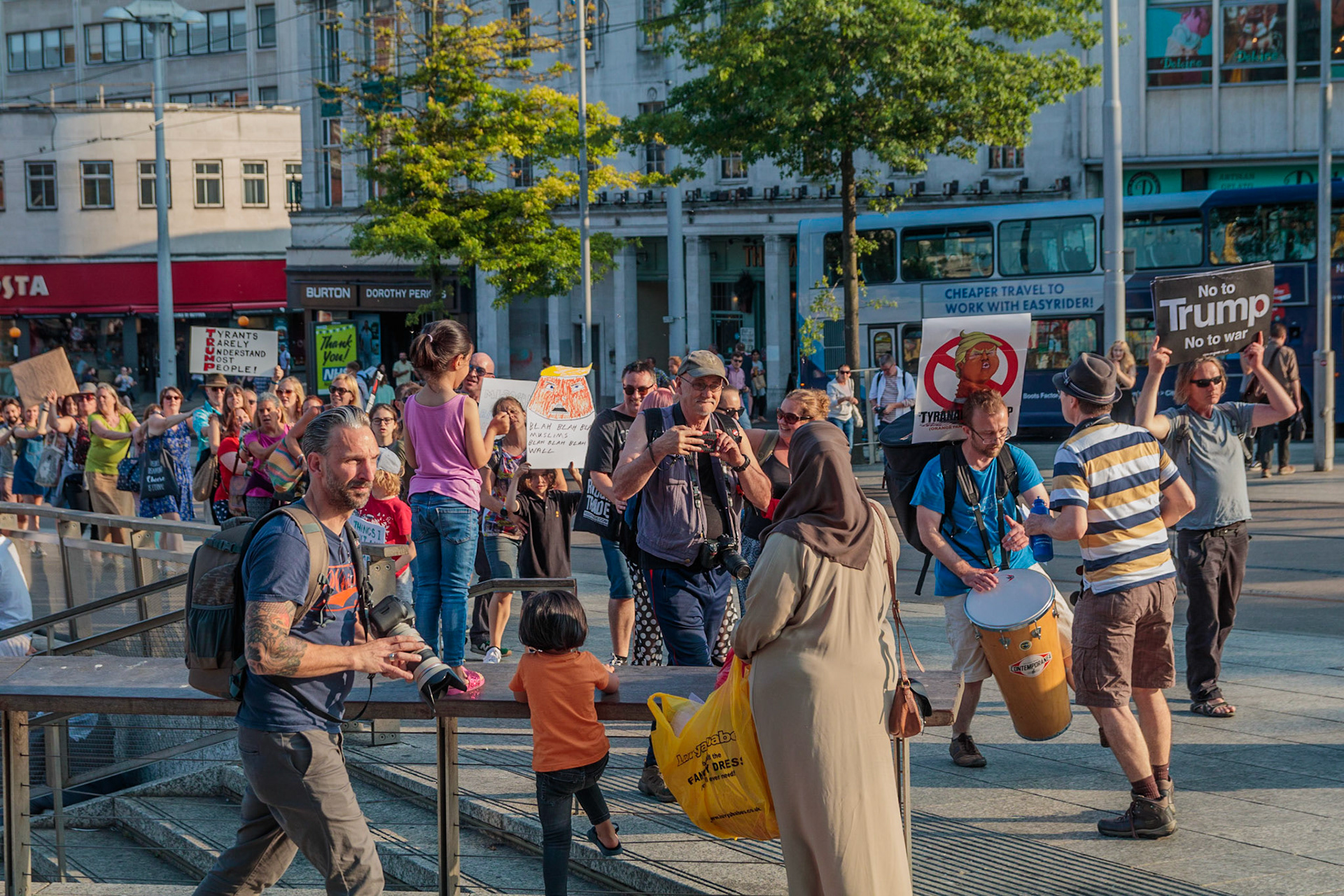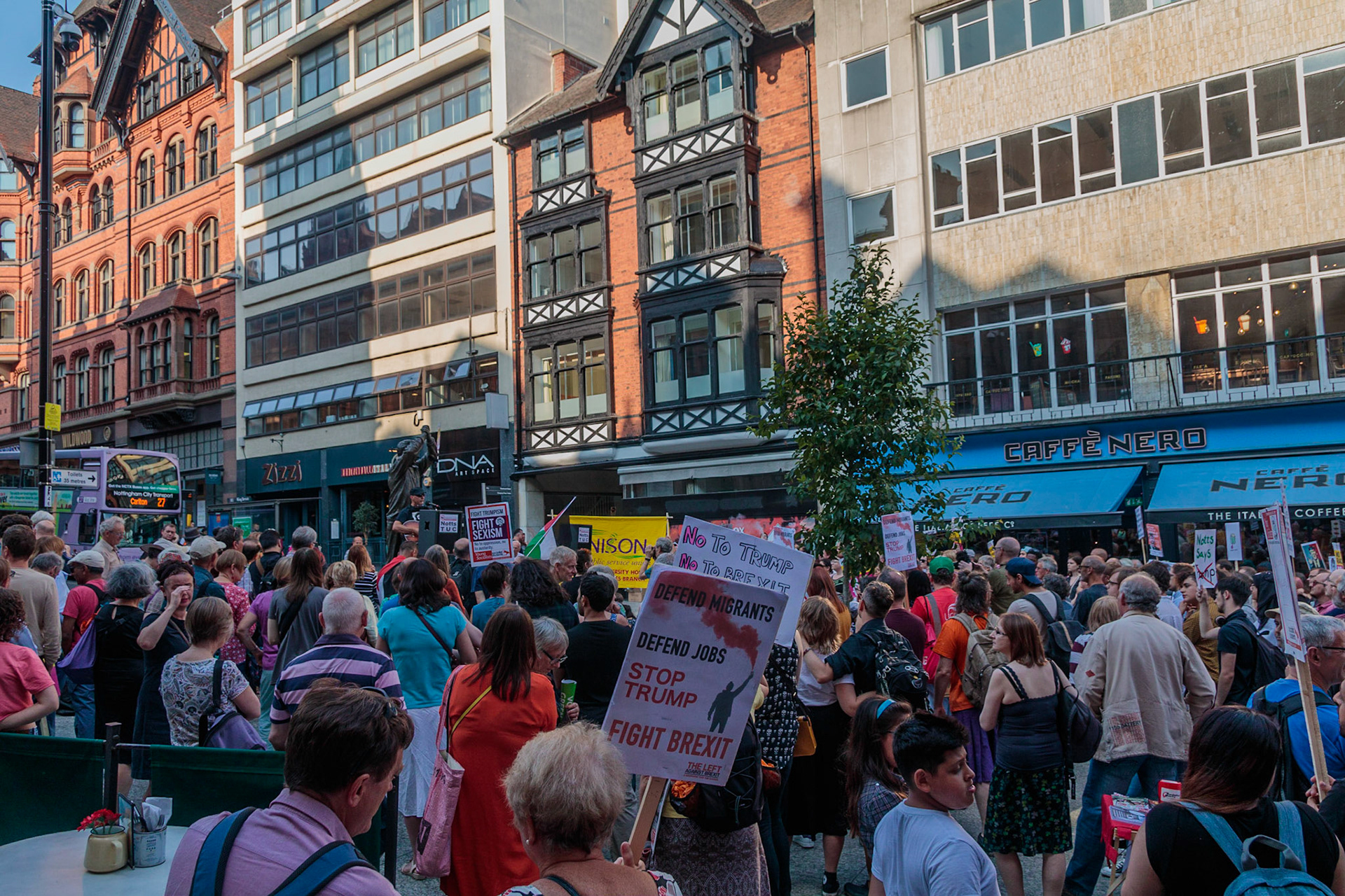 Anti Donald Trump protest at Speakers' Corner, Nottingham followed by a communal Conga Dance around the Old Market Square.