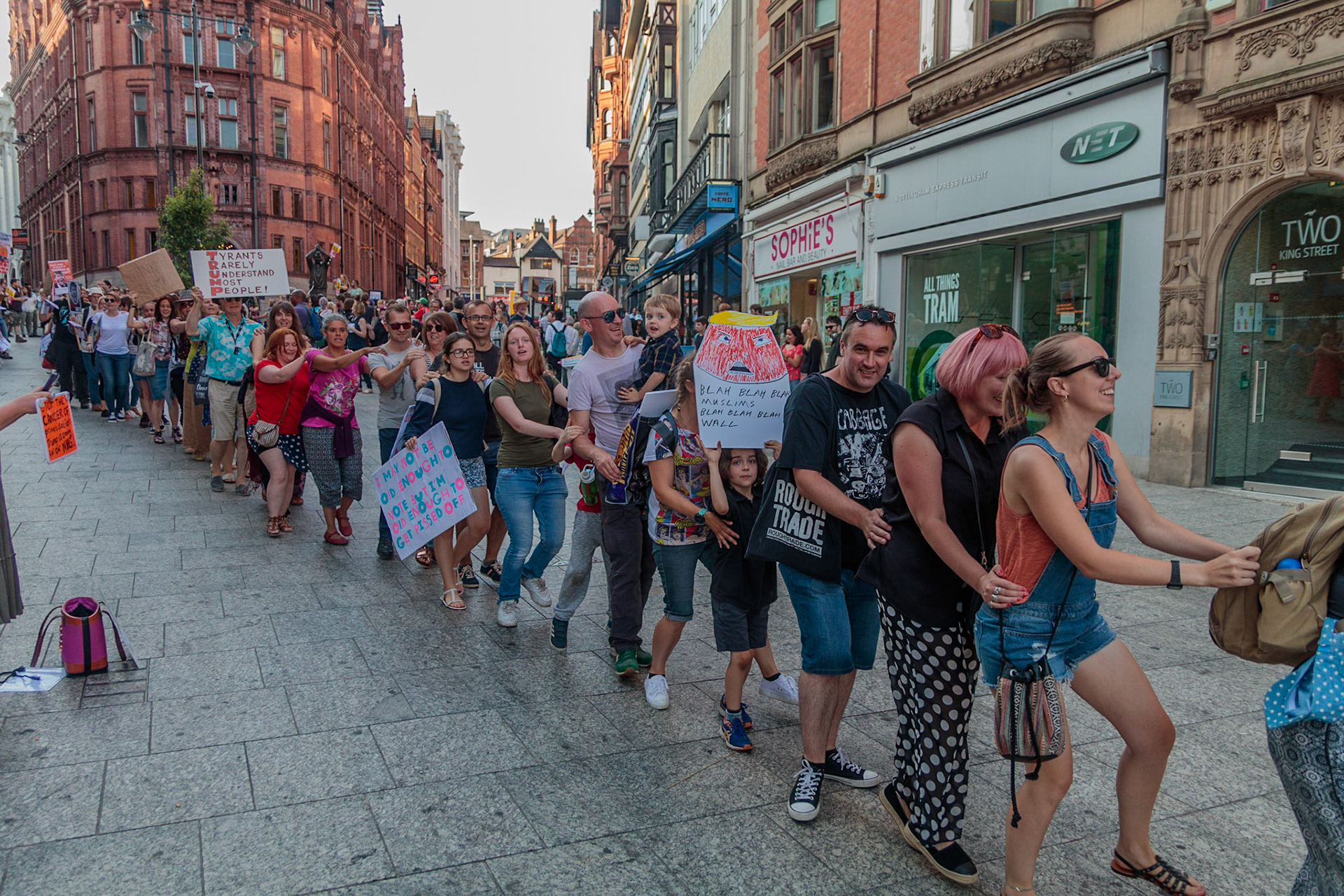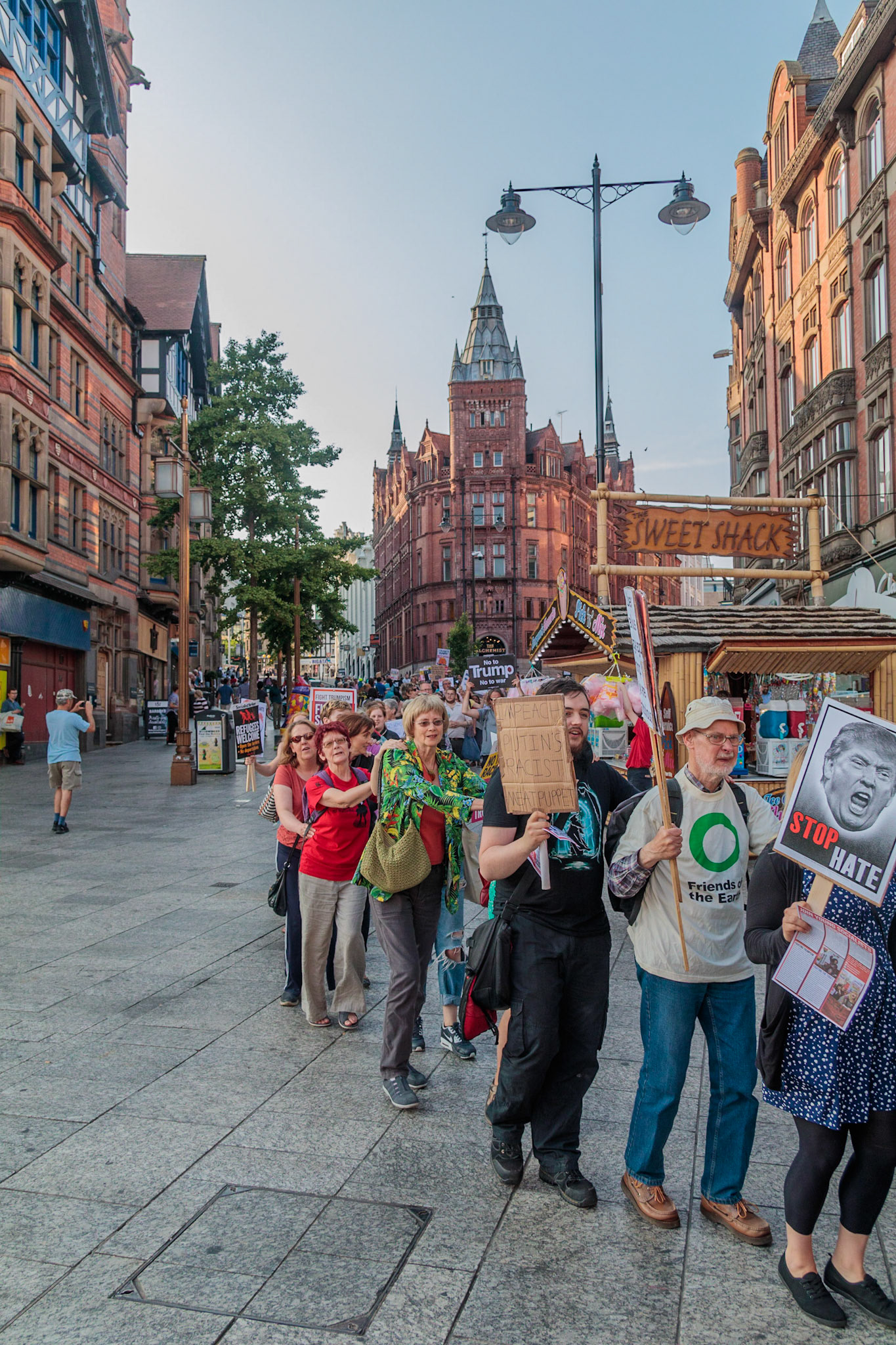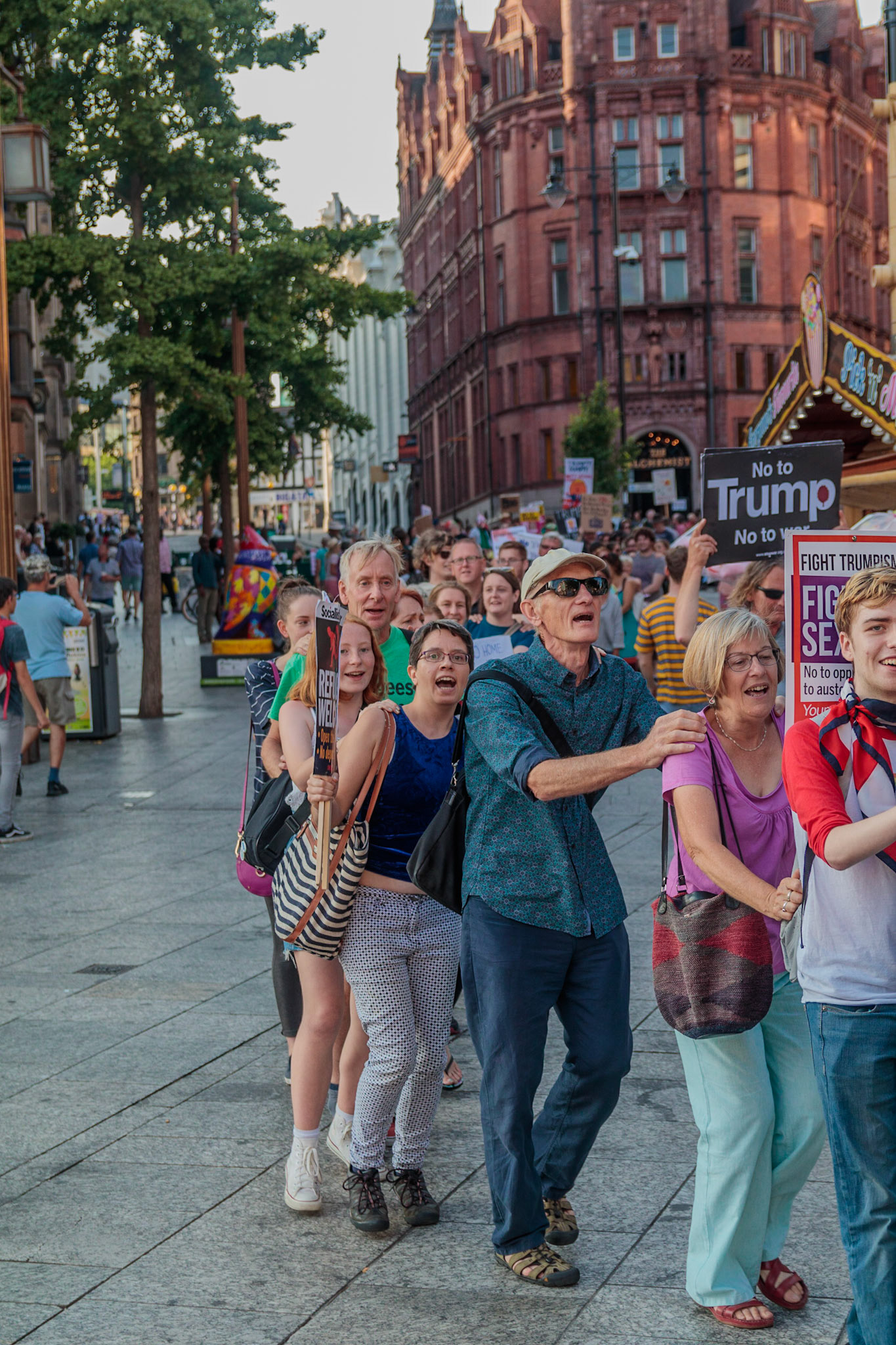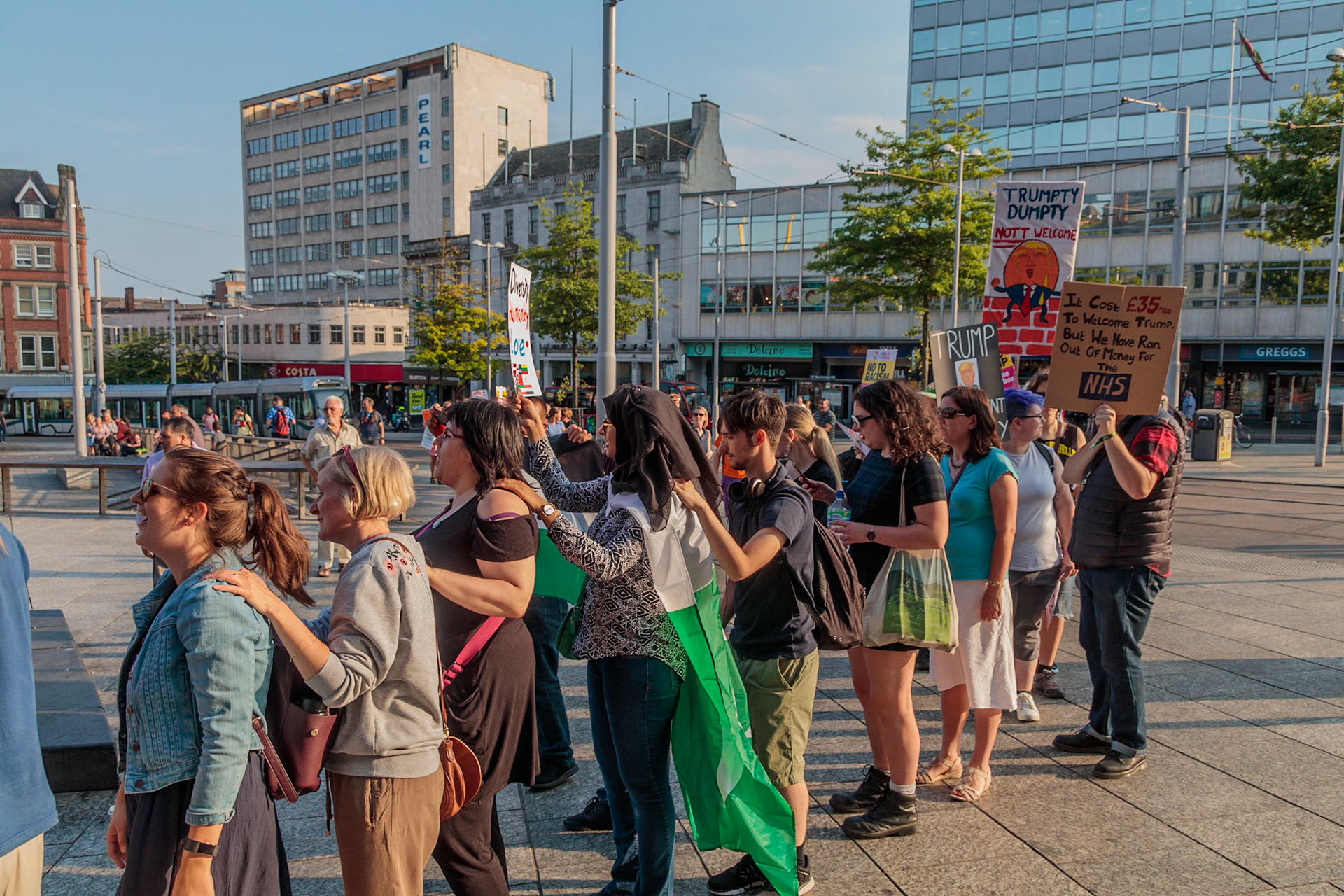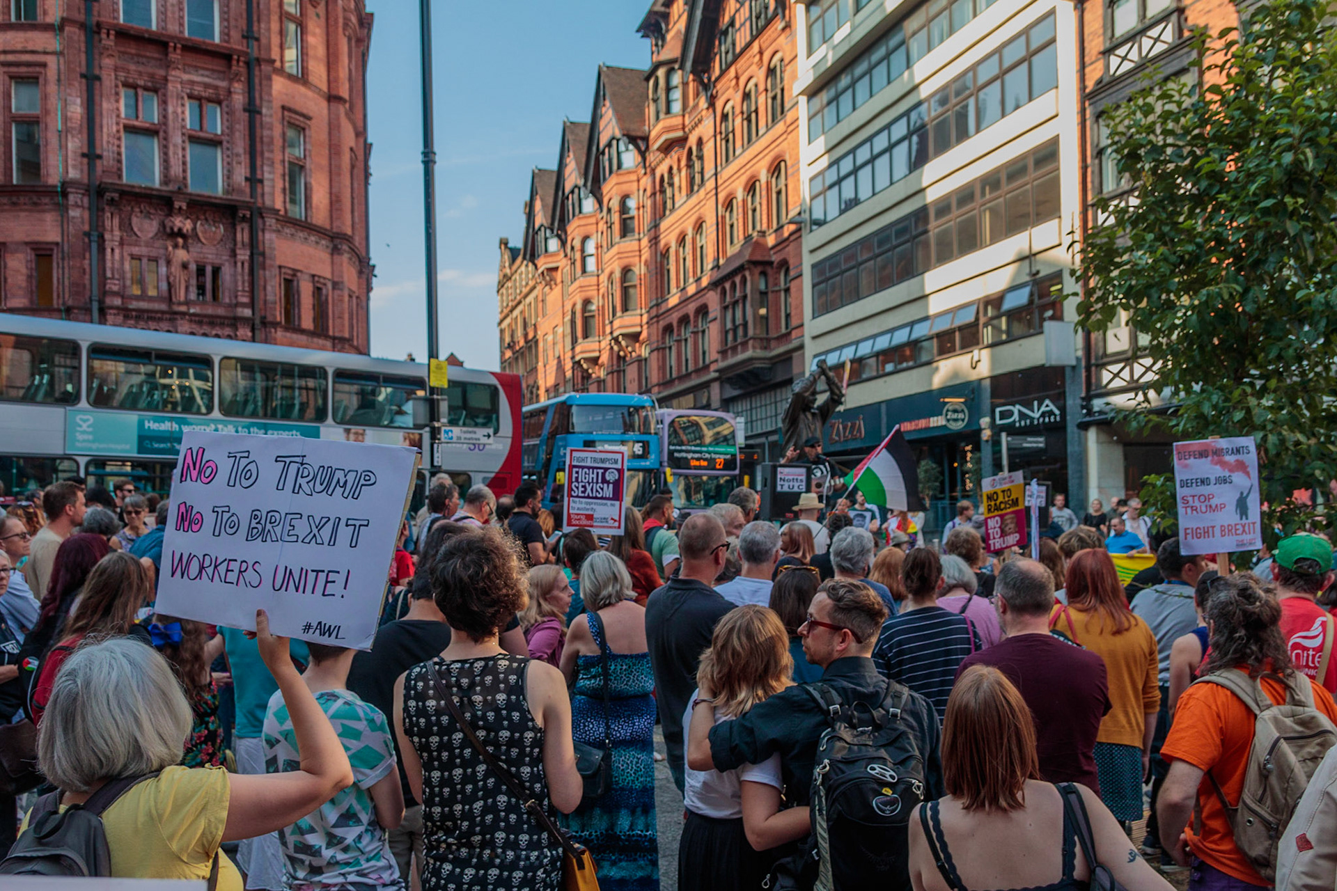Anti Donald Trump protest at Speakers' Corner, Nottingham followed by a communal Conga Dance around the Old Market Square.