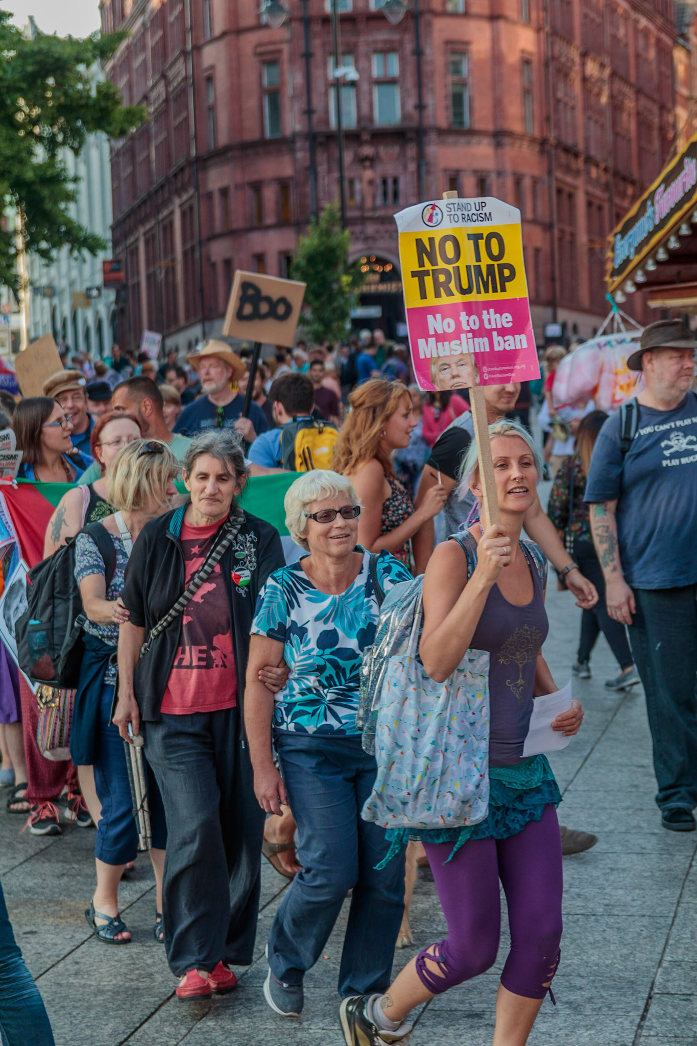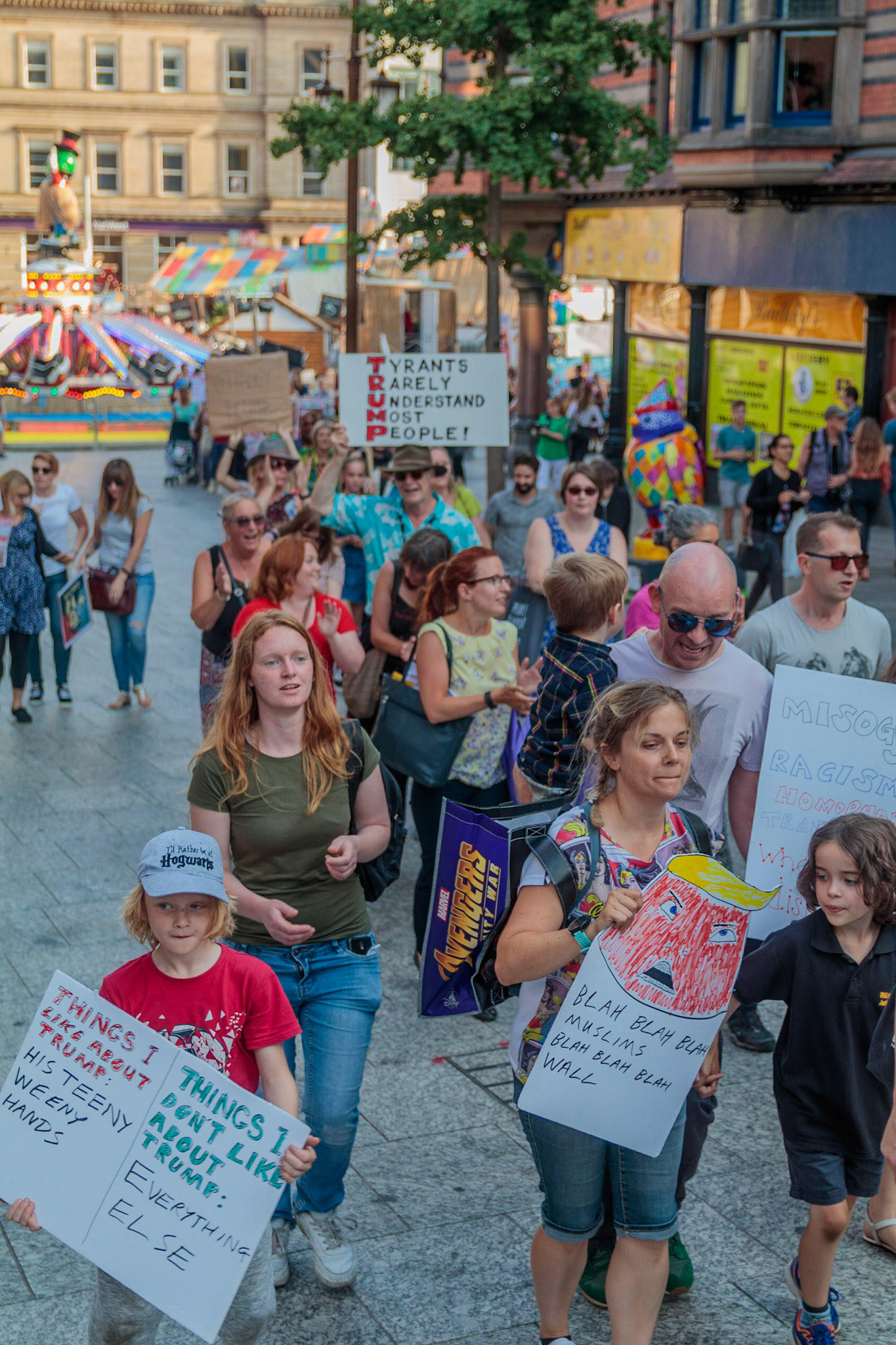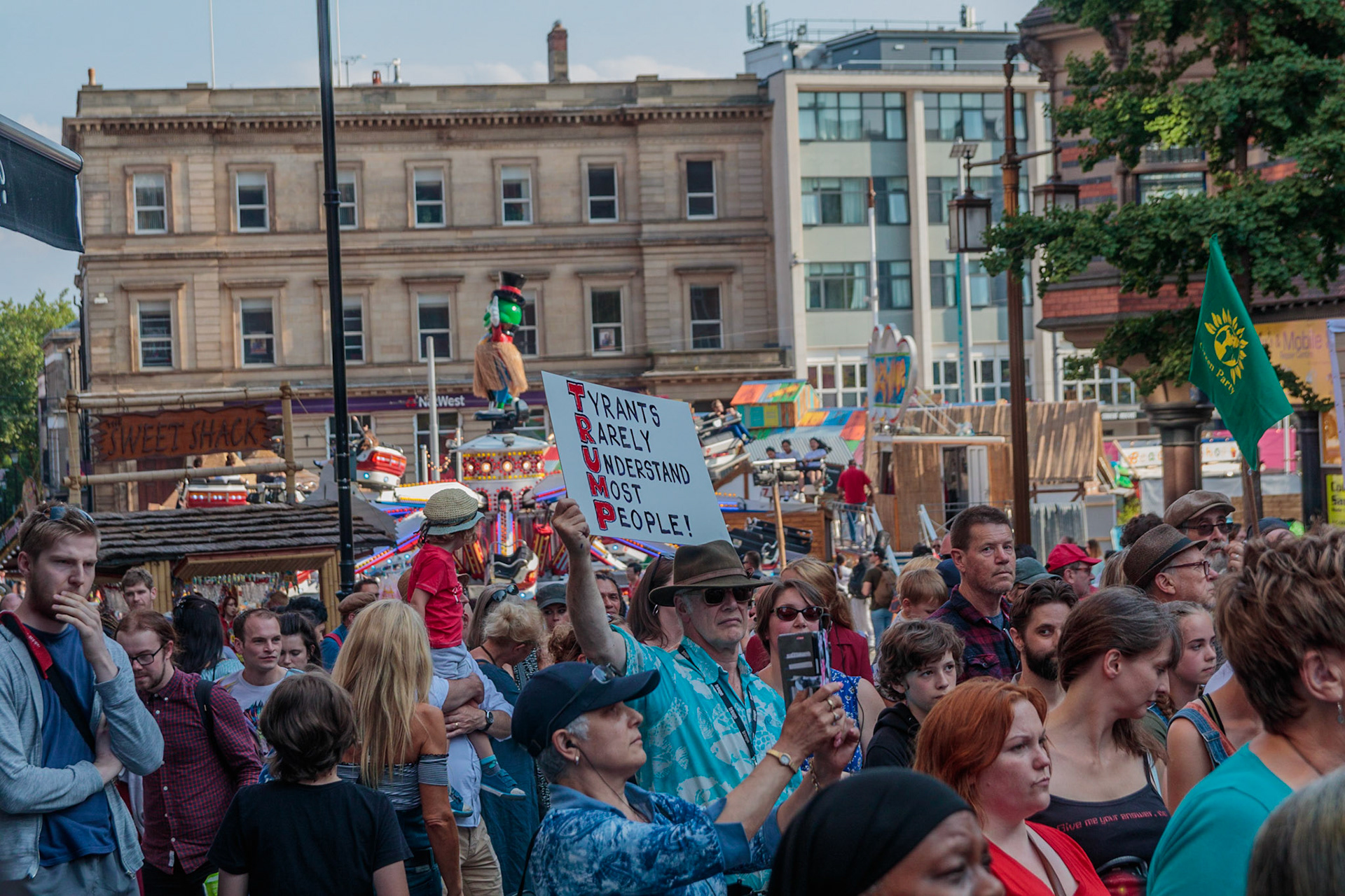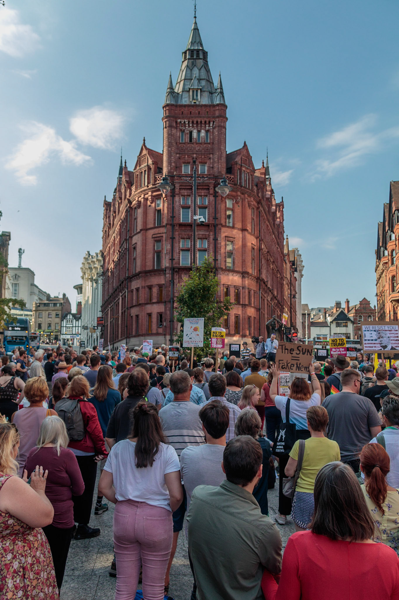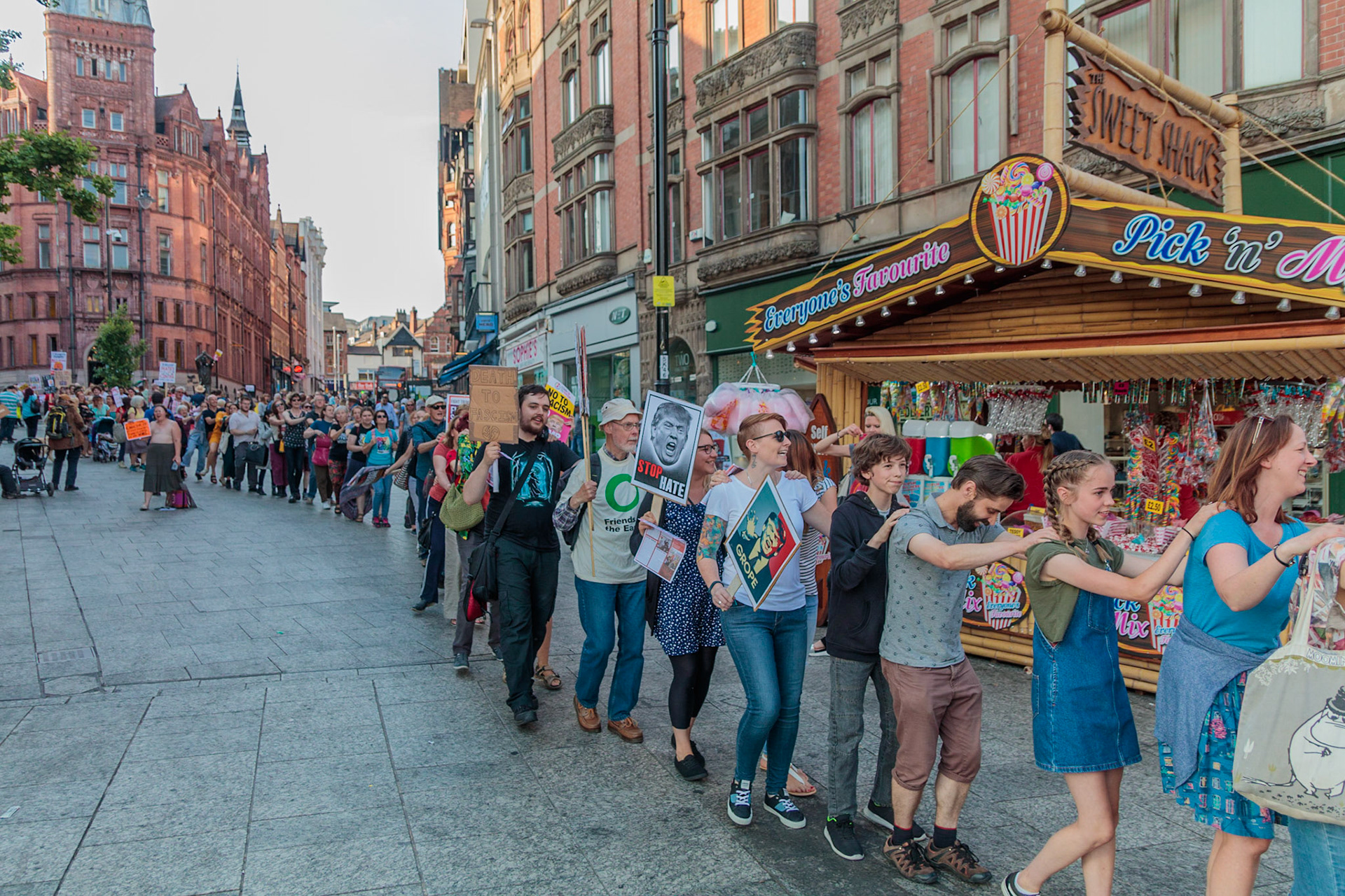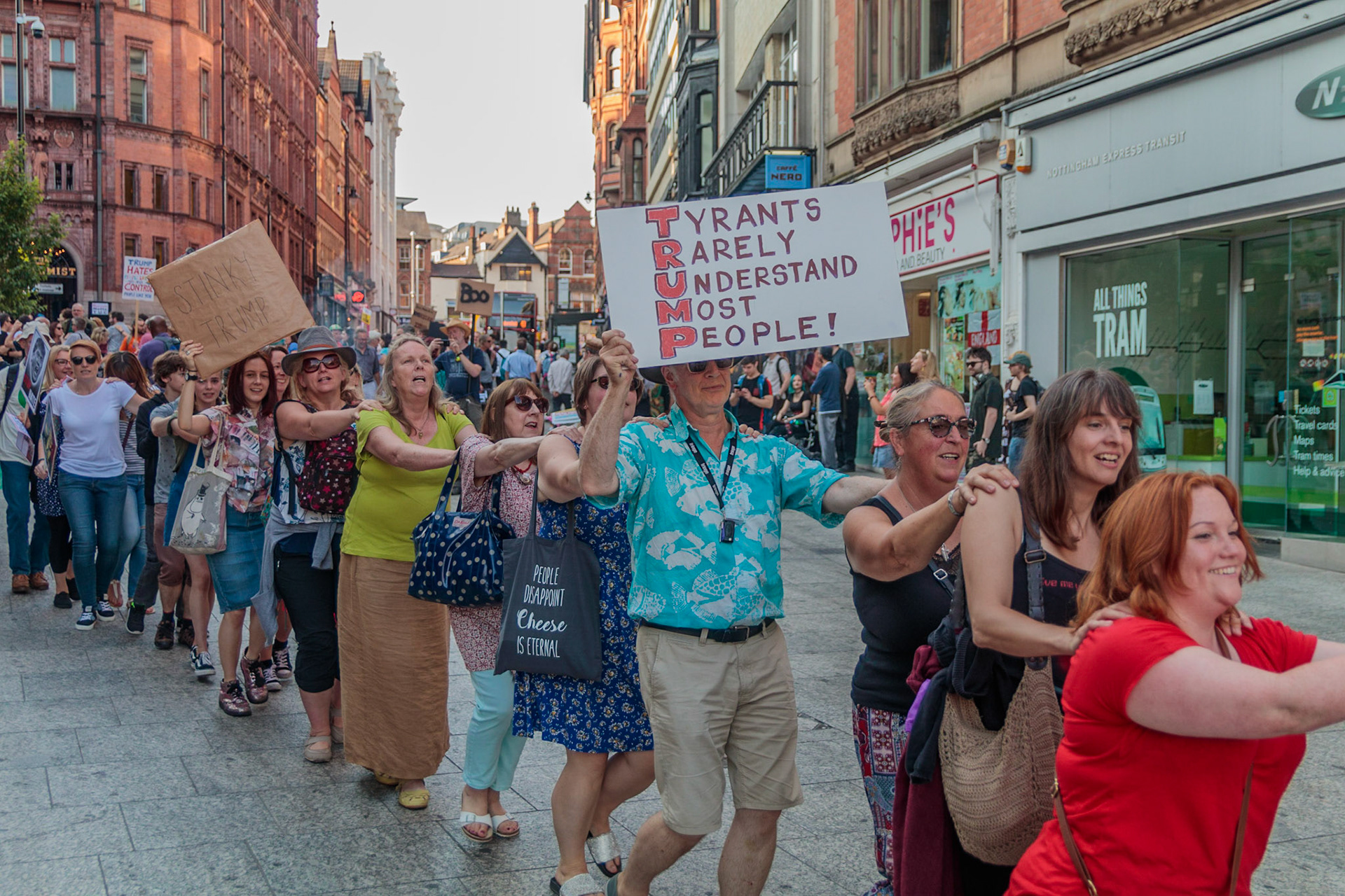 Anti Donald Trump protest at Speakers' Corner, Nottingham followed by a communal Conga Dance around the Old Market Square.