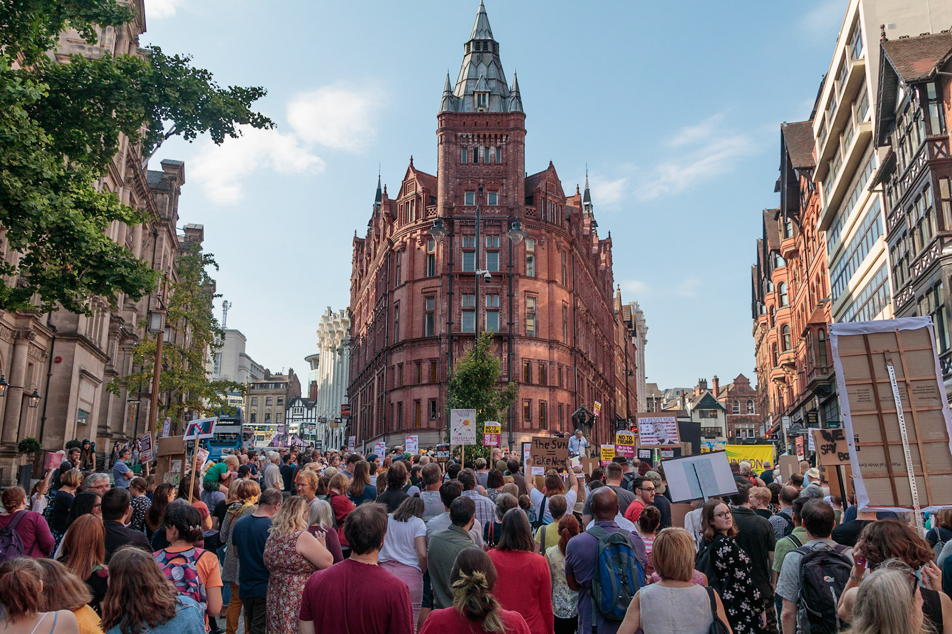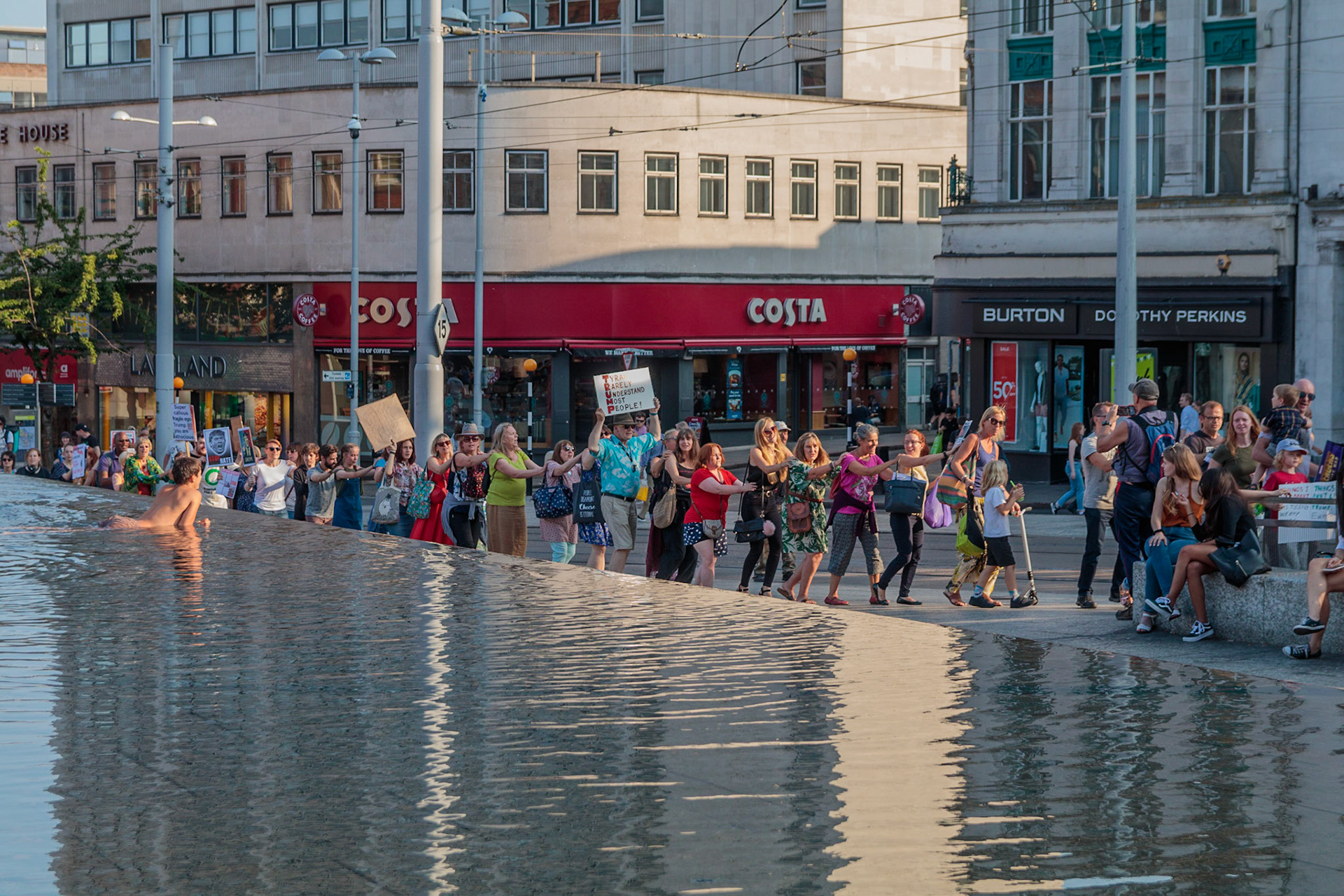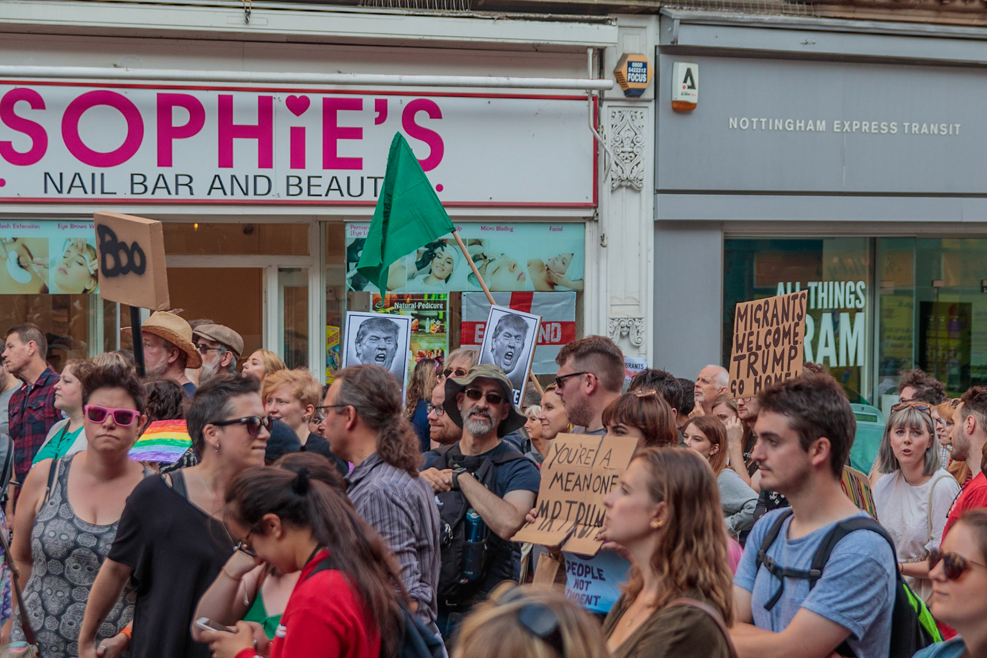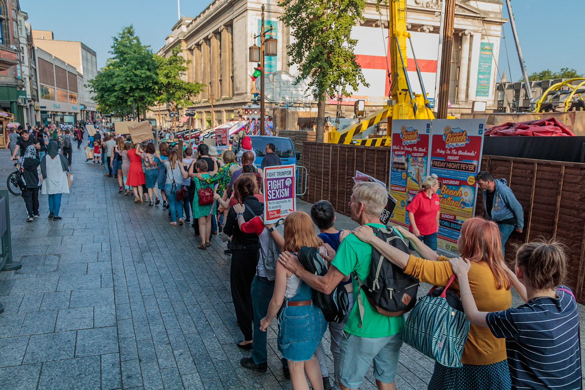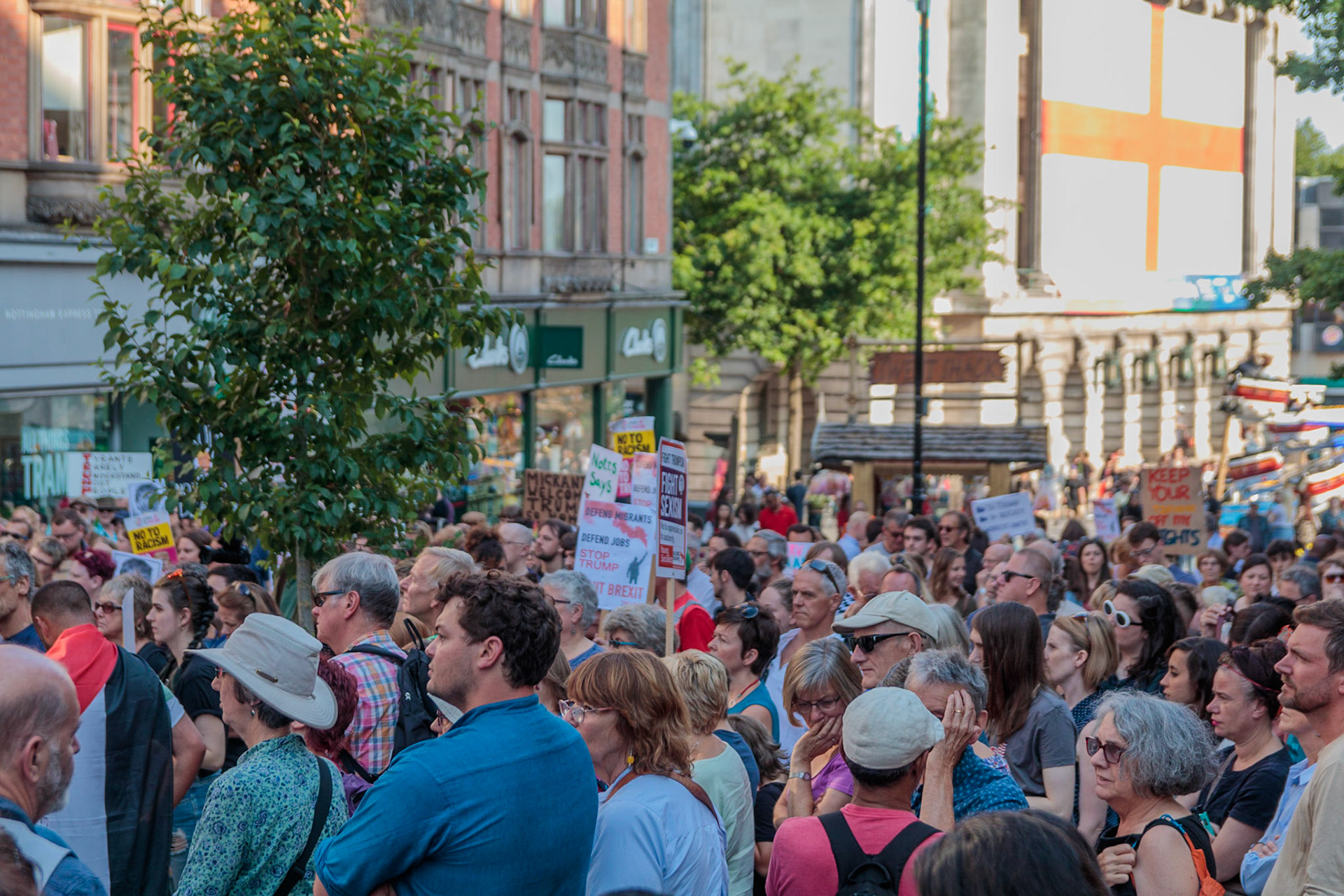 Anti Donald Trump protest at Speakers' Corner, Nottingham followed by a communal Conga Dance around the Old Market Square.