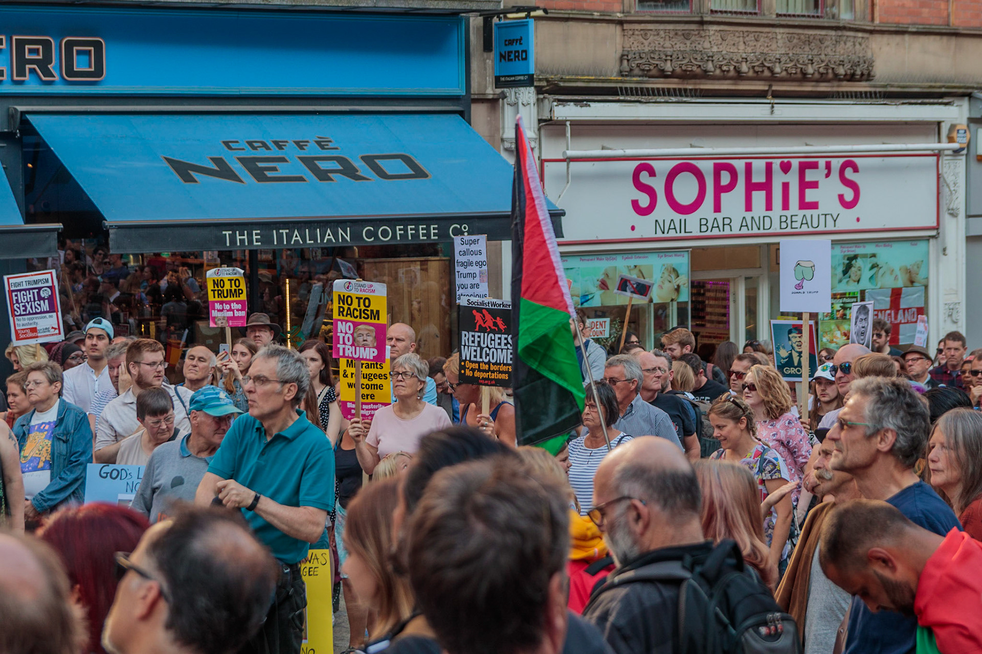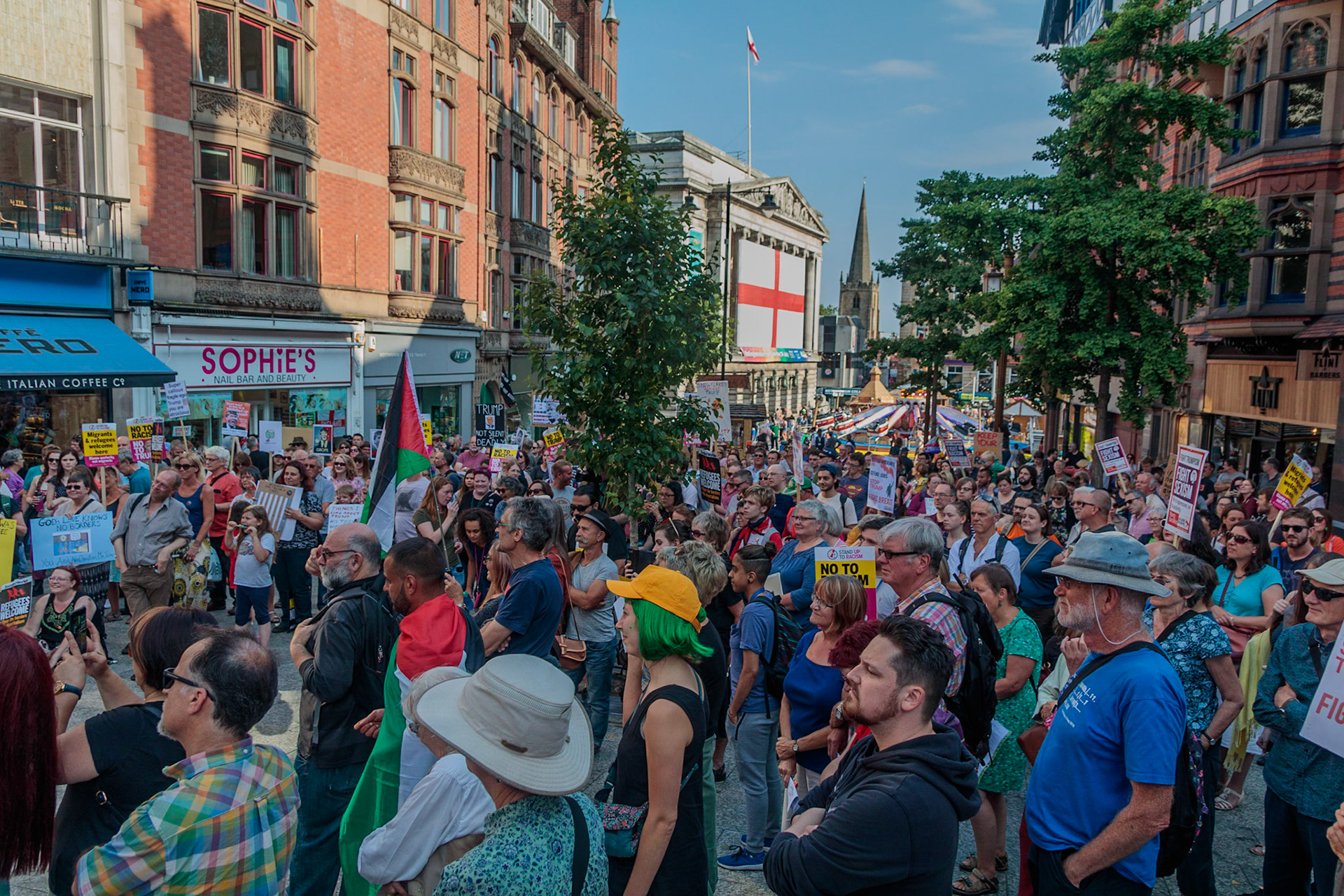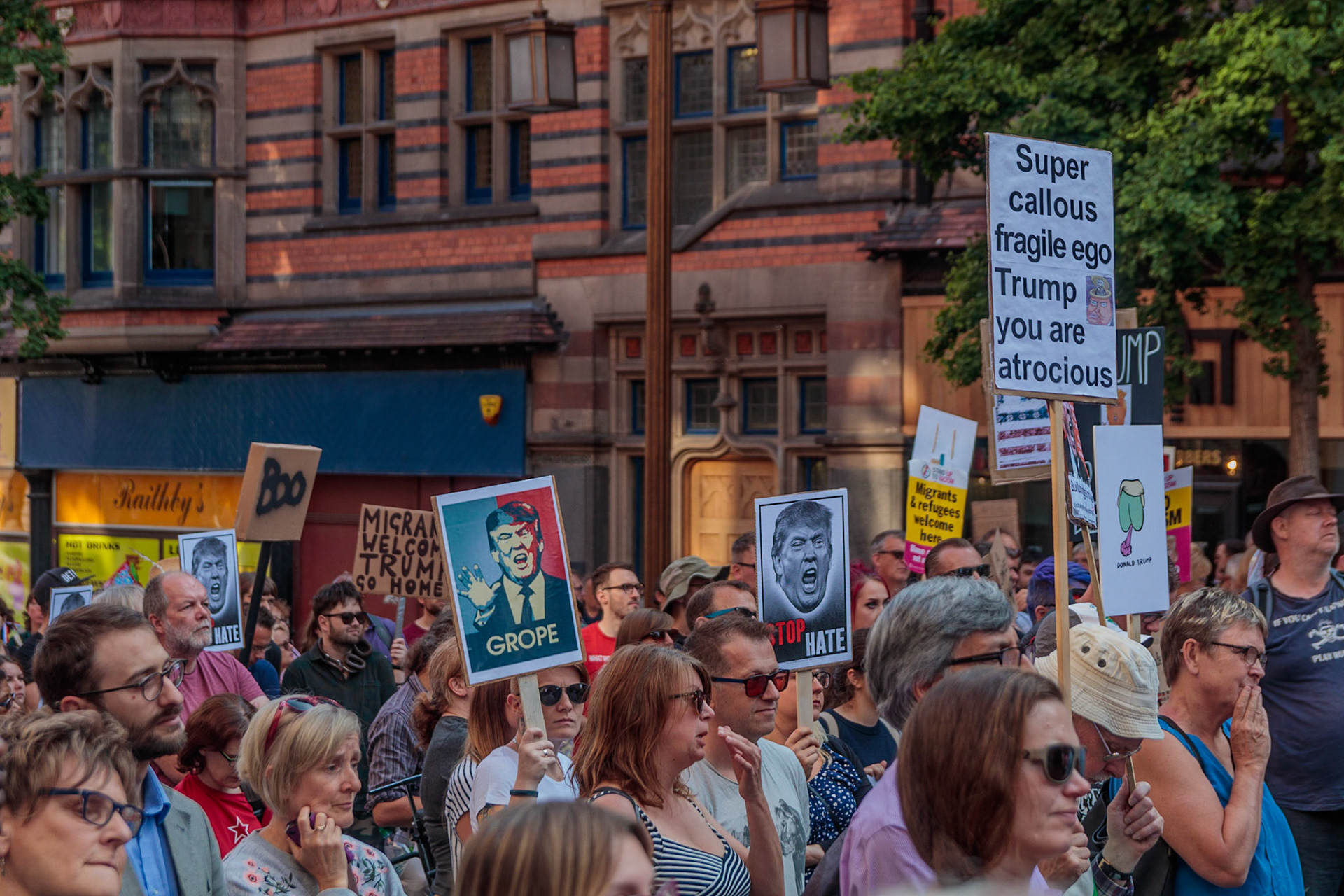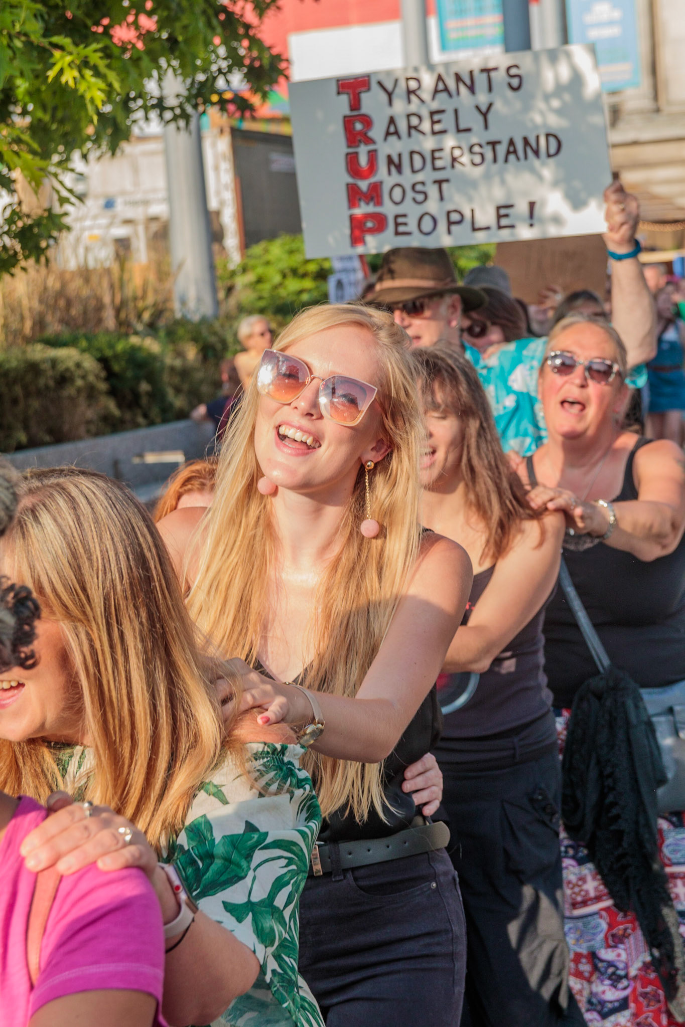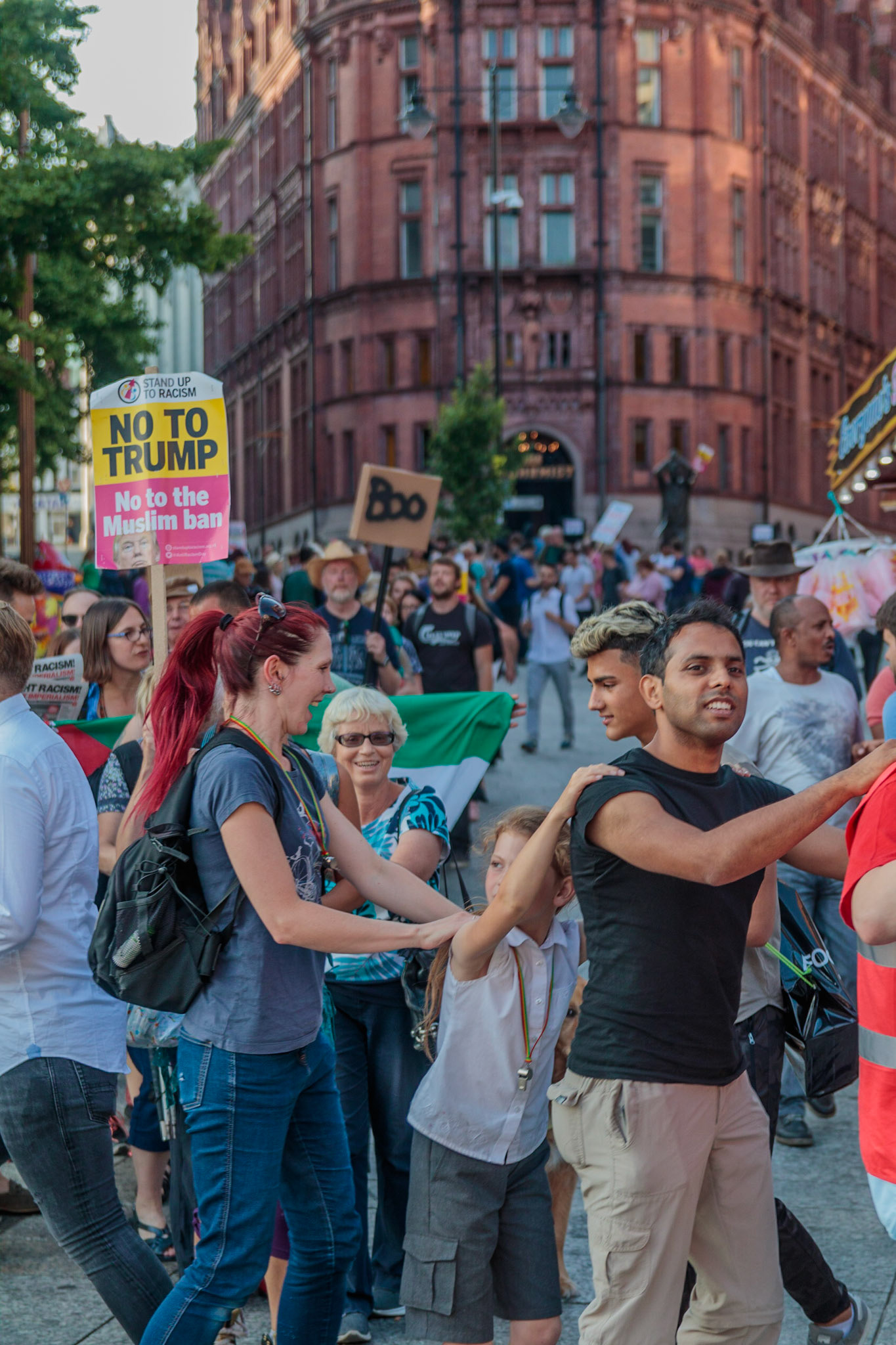 Anti Donald Trump protest at Speakers' Corner, Nottingham followed by a communal Conga Dance around the Old Market Square.