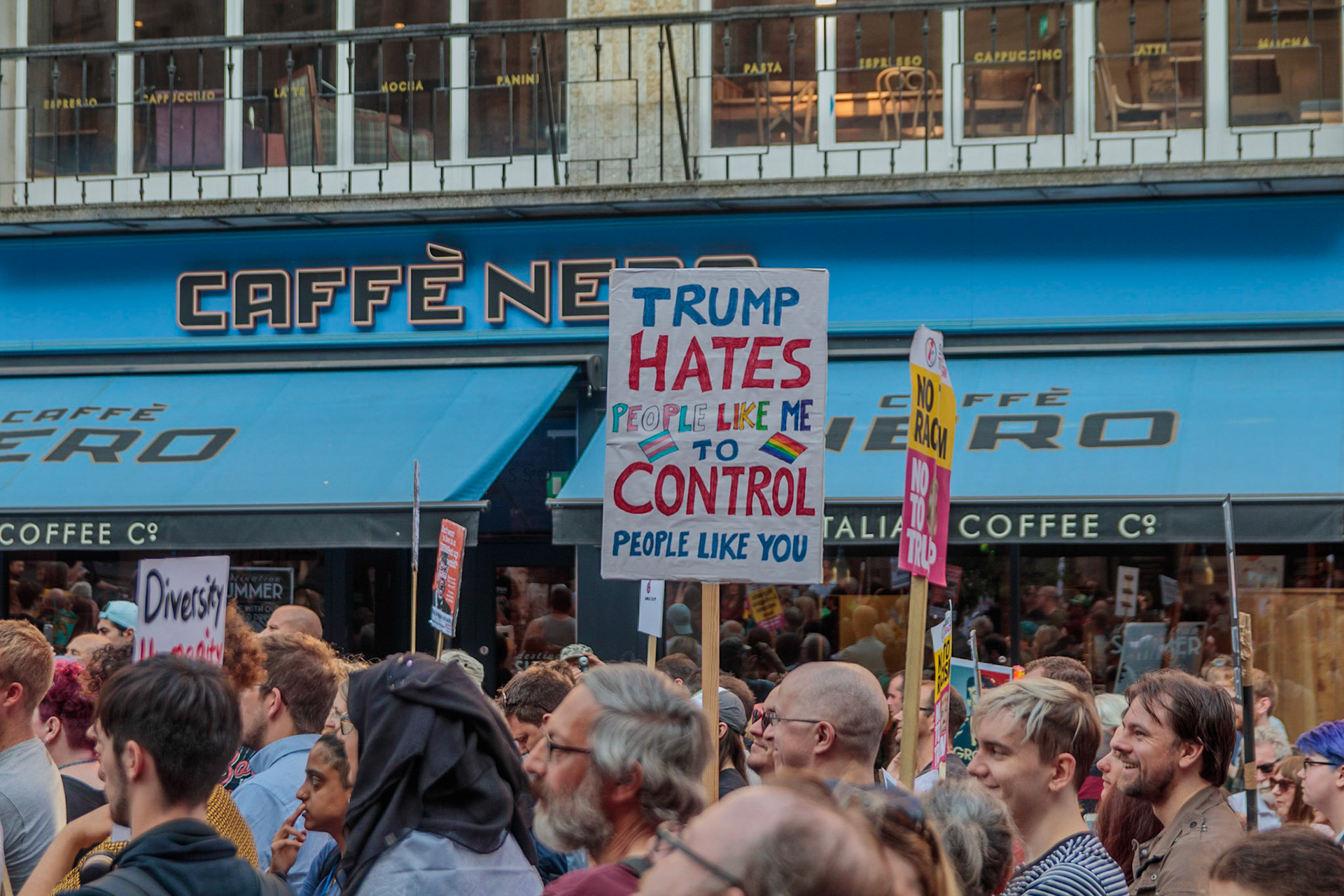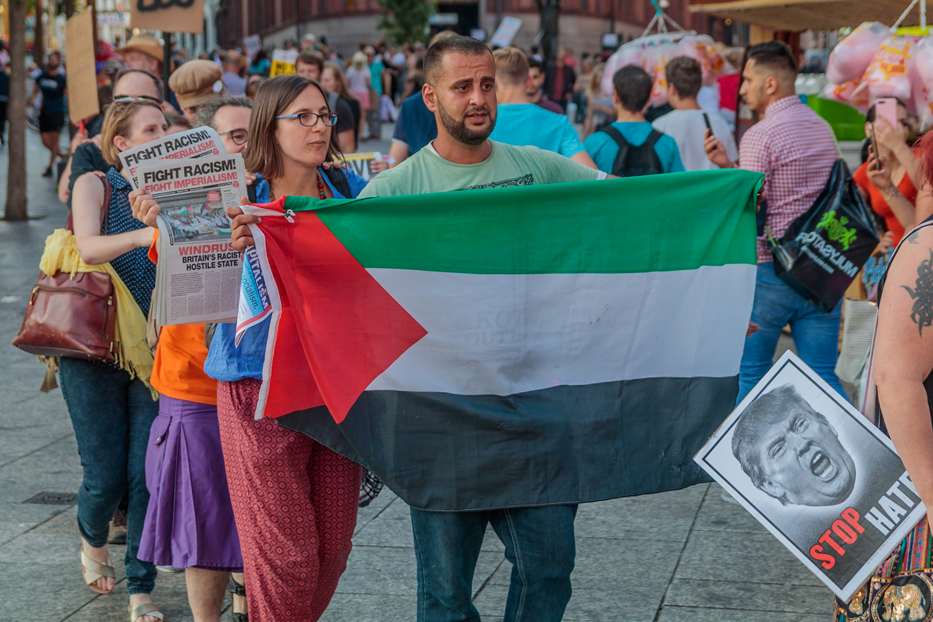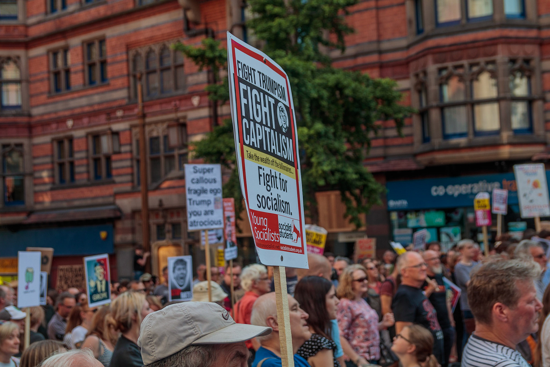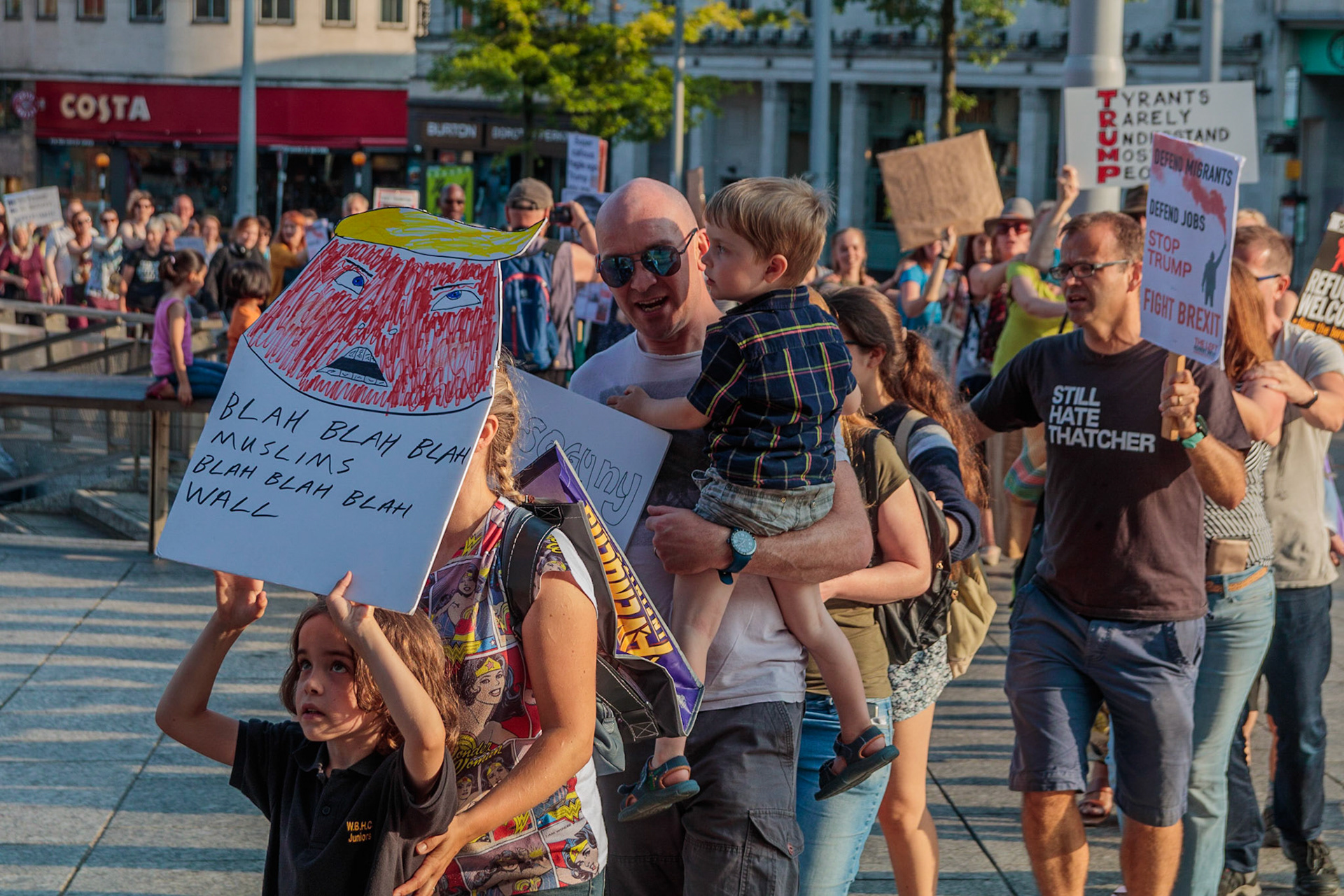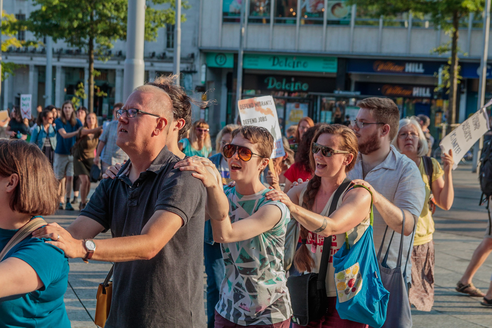 Anti Donald Trump protest at Speakers' Corner, Nottingham followed by a communal Conga Dance around the Old Market Square.